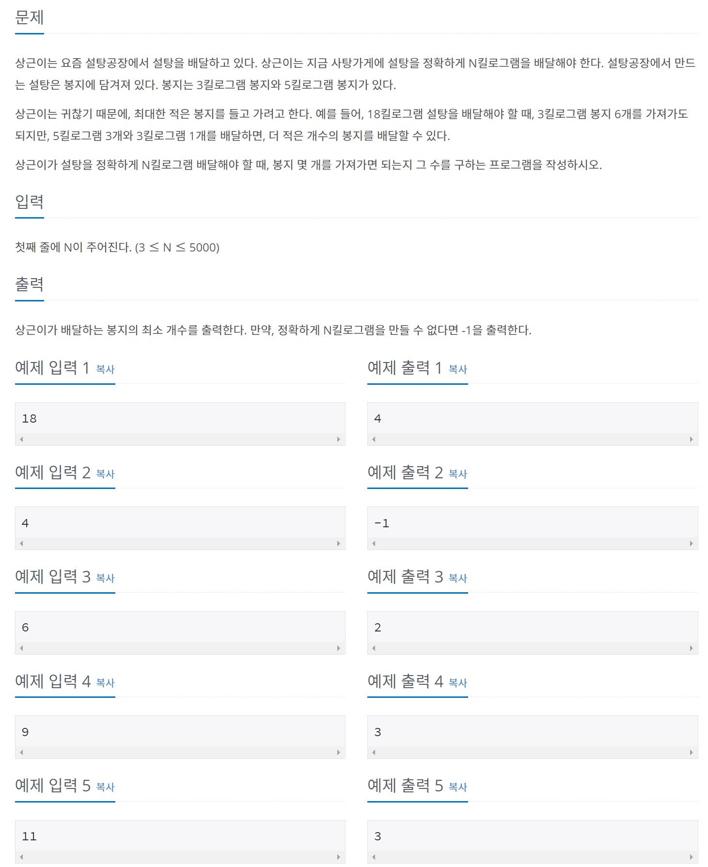 문제 출처 : https://www.acmicpc.net/problem/2839