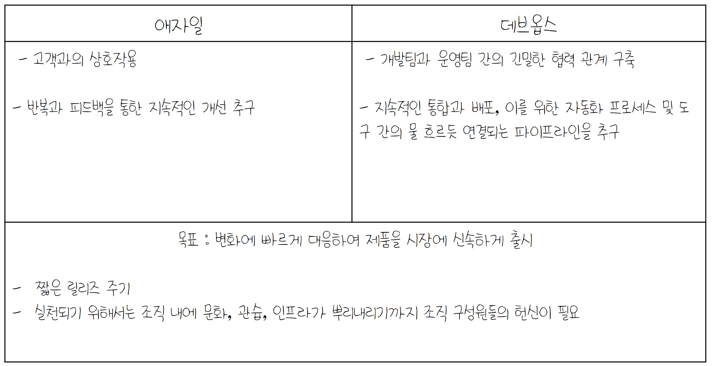 - 목적: 소프트웨어 서비스를 빠른 시간에 개발 및 배포