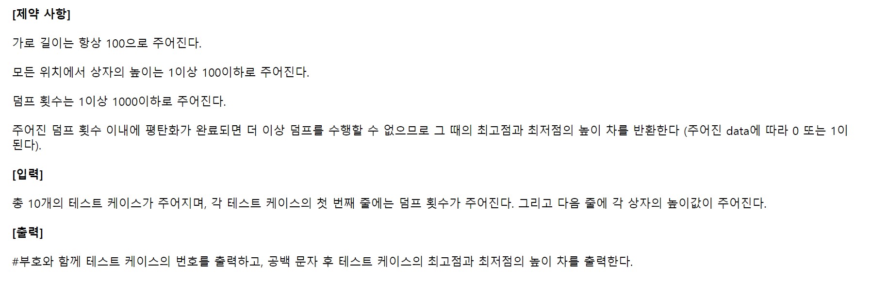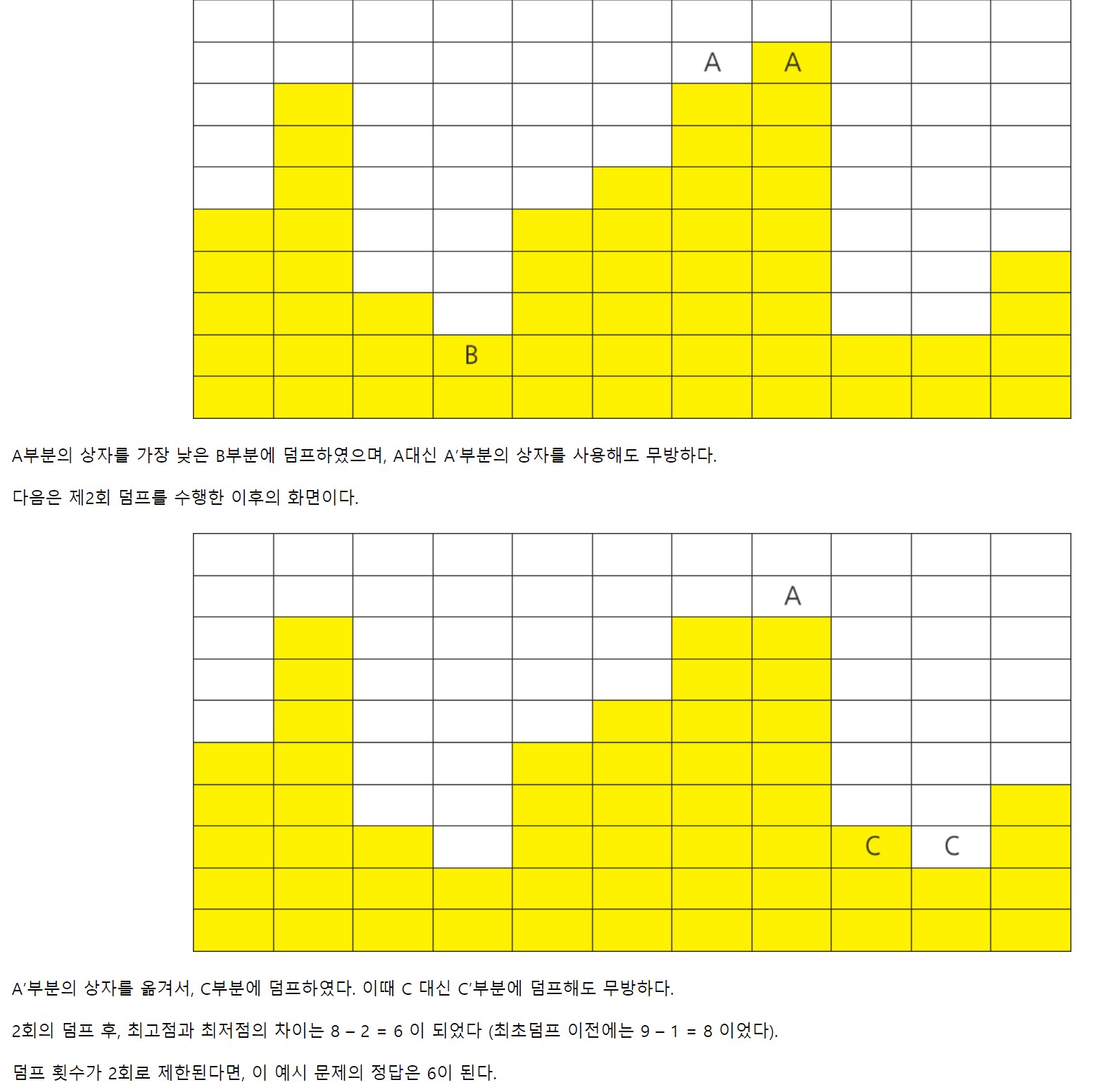 if(diff<=1 || cnt==num) //평탄화가 이미 완료됐거나 횟수만큼 다 돌았다면