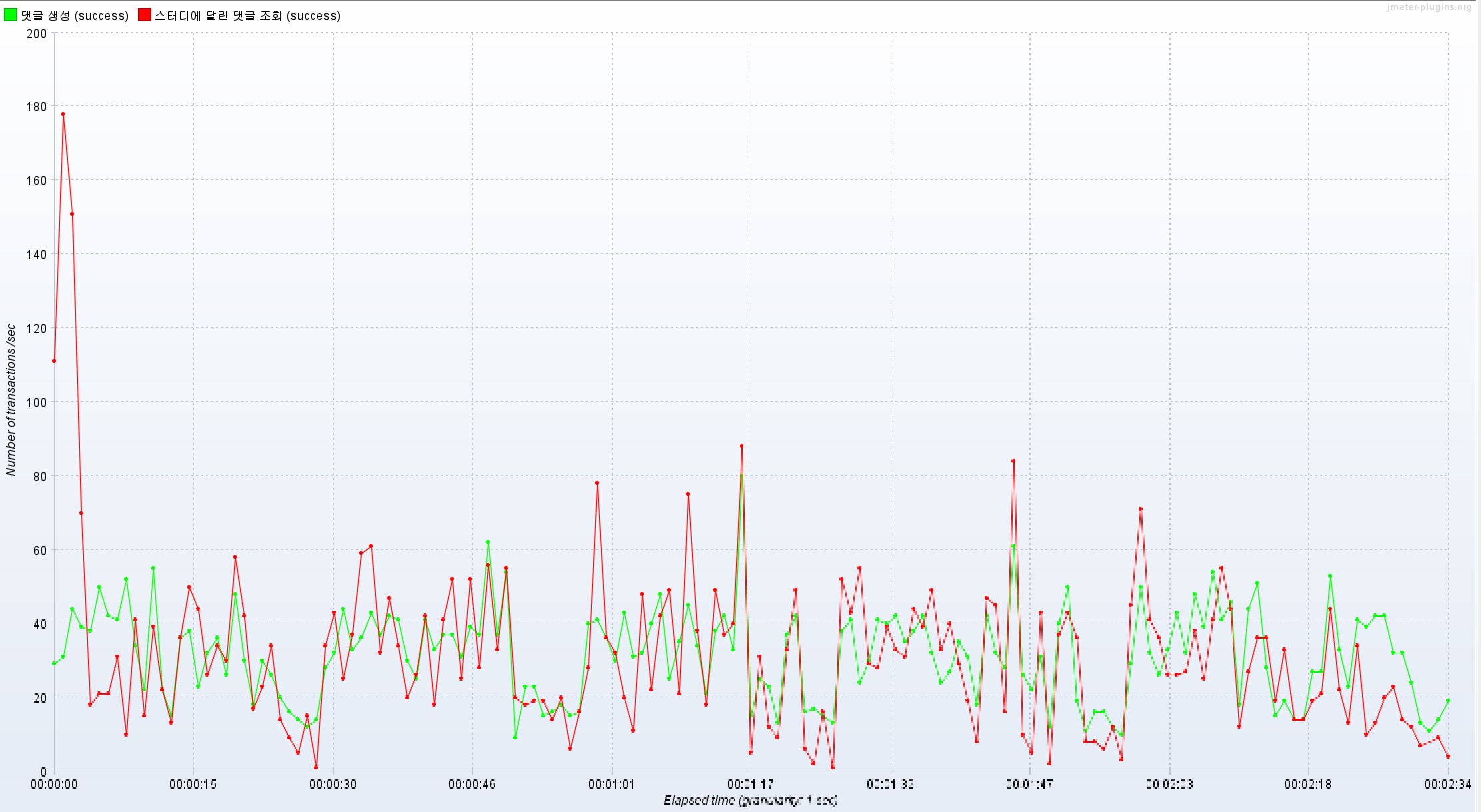 스터디 게시물 전체 조회를 테스트해 봤는데, 조건은 유저 1000명이 이 작업을 100번 반복하게 하였다.
