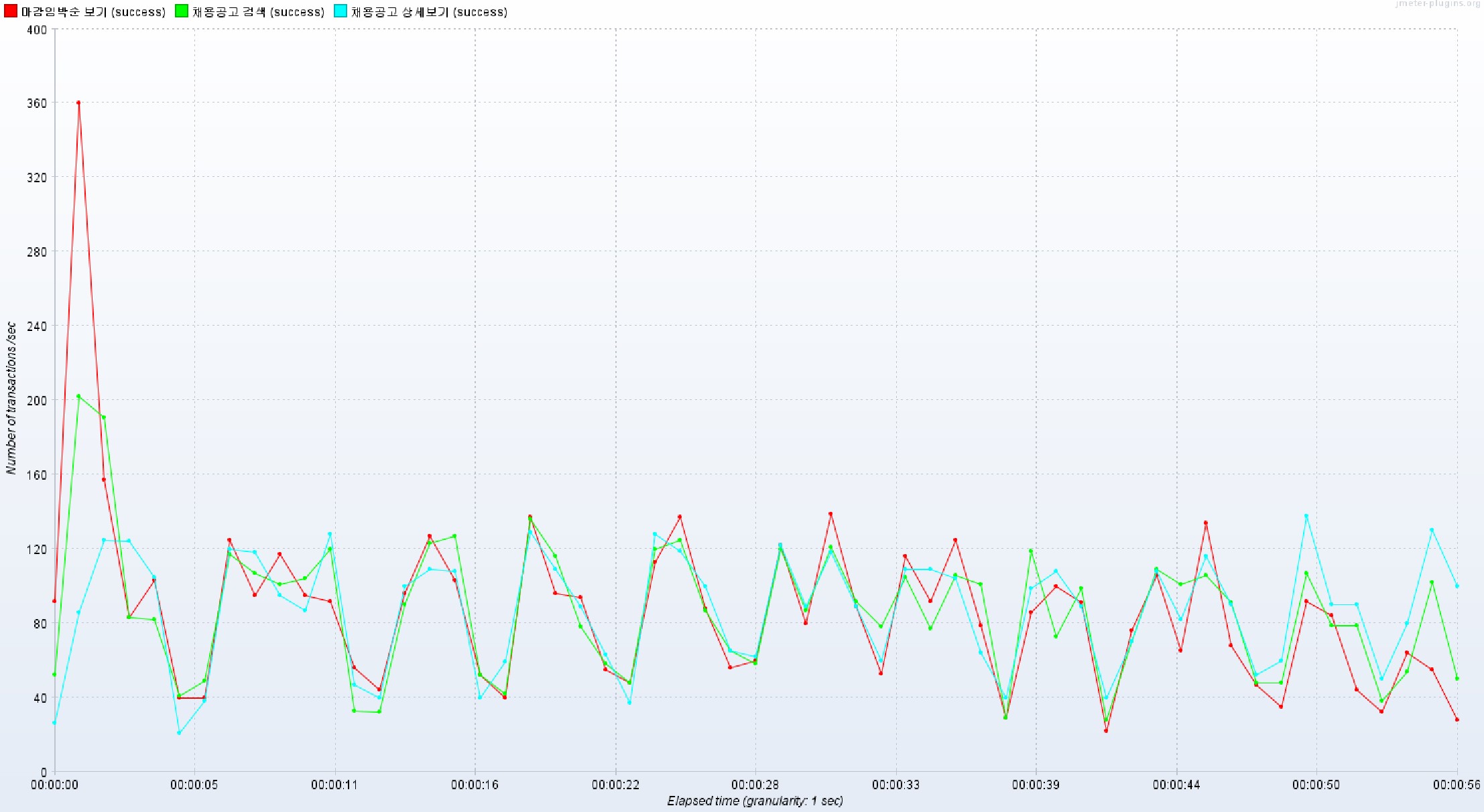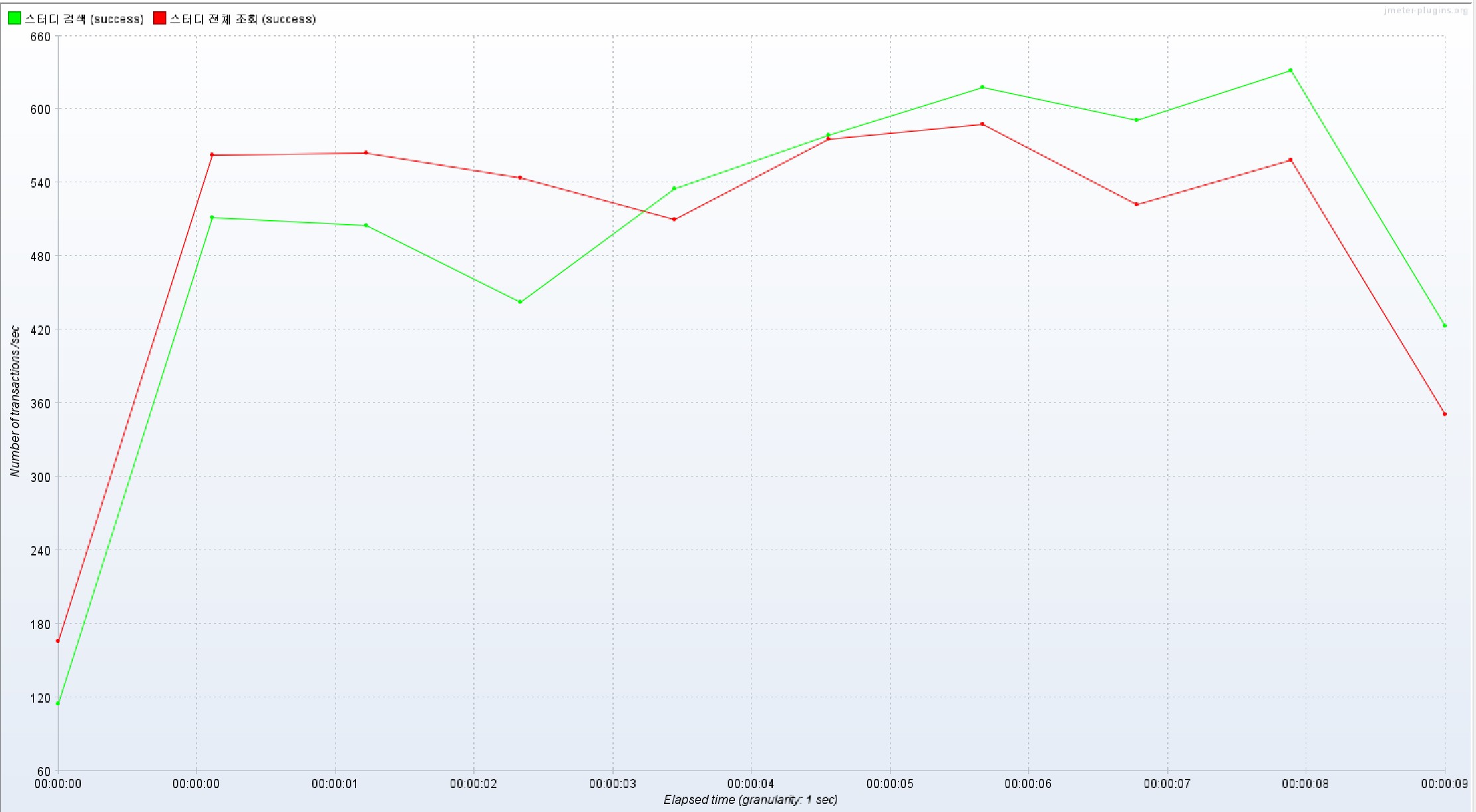 왼쪽 수치는 TPS(Transaction per second)로 보통 worst case를 동접 가능로 잡기 때문에 동시접속 약 500명을 커버한다고 볼 수 있다.