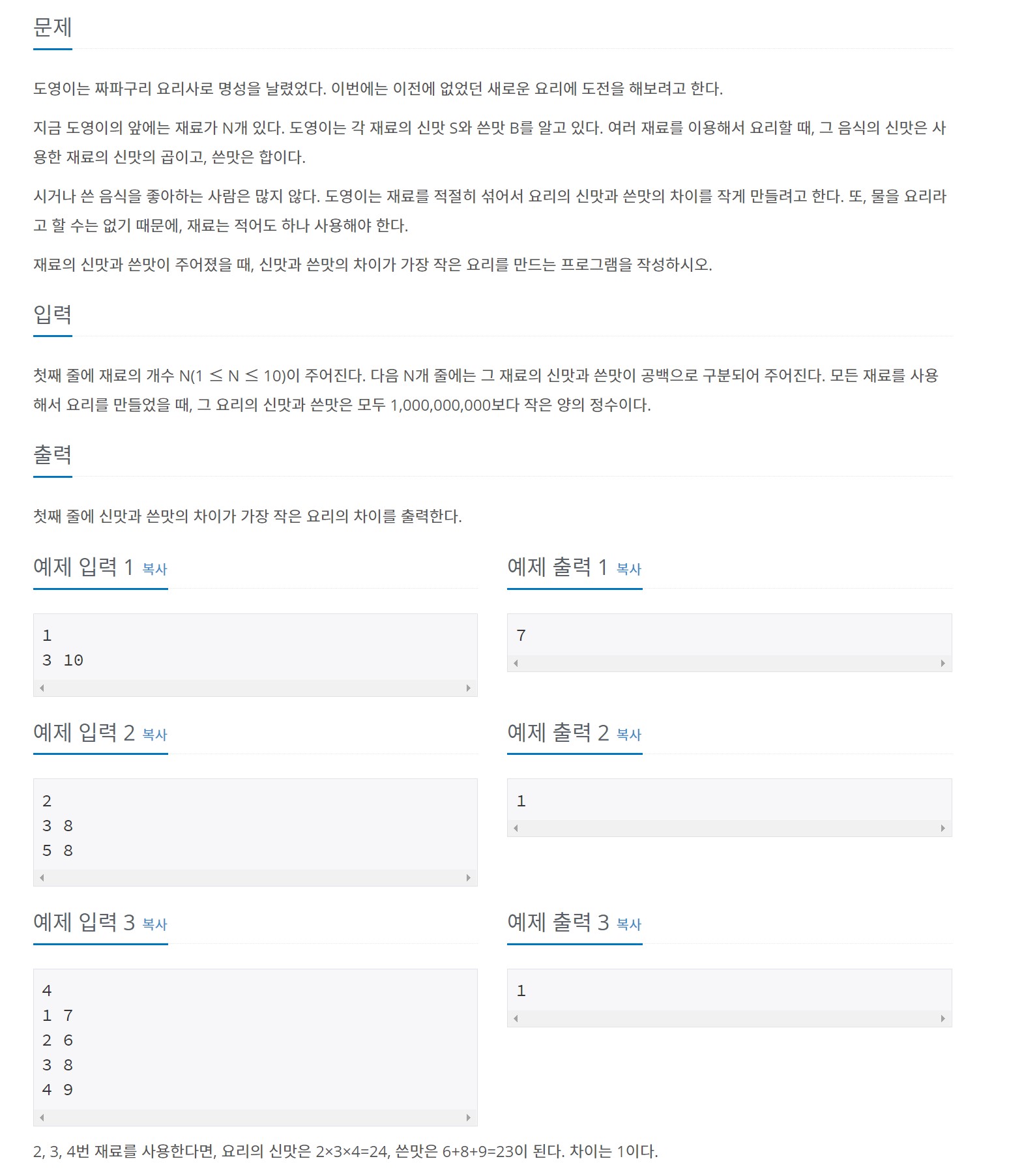 [BOJ][JAVA]2961 - 도영이가 만든 맛있는 음식